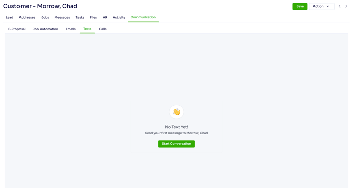 The Text Center is where all text conversations are stored. You can view ongoing, scheduled, and past messages between your team and customers.