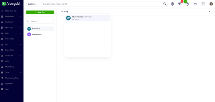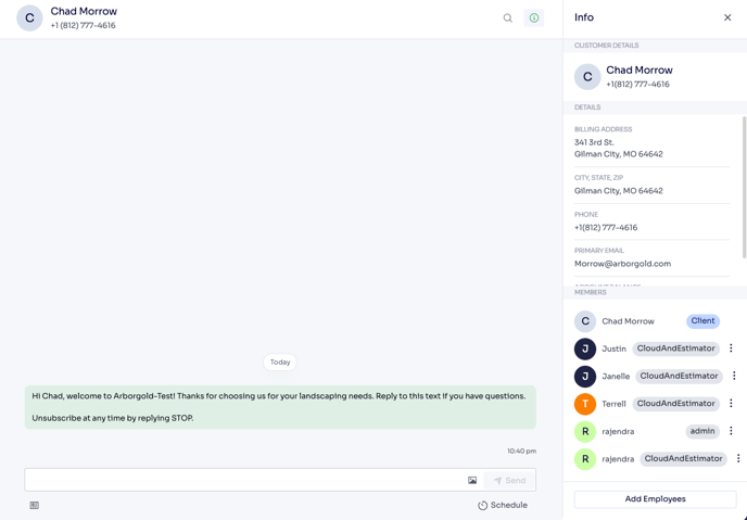 Note: By default, all Arborgold users with the roles Cloud & Estimator or Cloud & Crew (Managers), as well as those with admin permissions for these roles (Cloud & Estimator with Admin Permission or Cloud & Crew with Admin Permission), will automatically be included in the text conversation with your Customers.