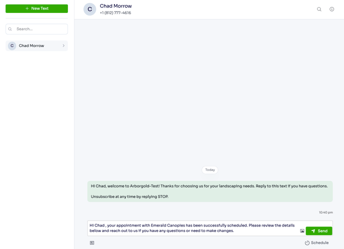 When creating a scheduled text, simply select a Customer, compose your message, and choose a future date and time for delivery.