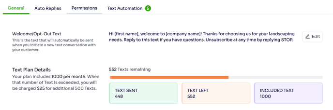- You have default Welcome/Opt-Out Text configured under Text Settings.