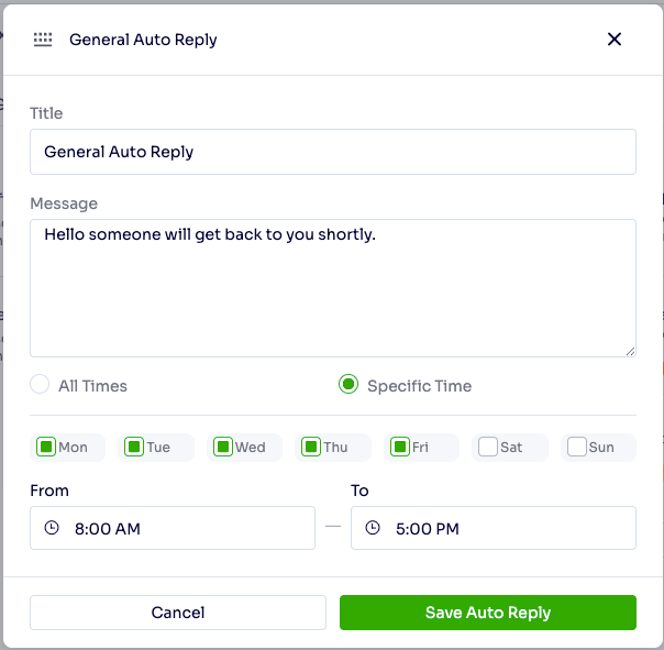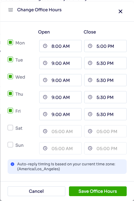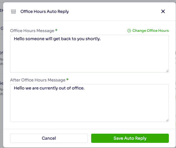 Send automatic replies based on your open or closed hours.You can update Office Hours Texts and Office Hours.