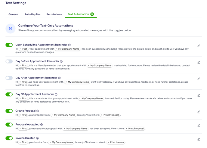 Introducing the new Text-Only Automation for all your Sales, Service, and Invoice processes. You no longer need to set up Campaigns or Templates when using Text Automation alone. Existing Appointment and Job Automations will continue to function as before for Email and Text follow-ups. This feature provides a new, streamlined way to automate text communication. The Text Only automations can be managed under Settings → Text Settings.