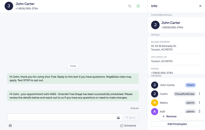 The Arborgold Crew App now supports Two-way texting, allowing crew members to send and receive Text messages directly with customers. This feature was previously available only for cloud roles and is now integrated into the Crew mobile experience.